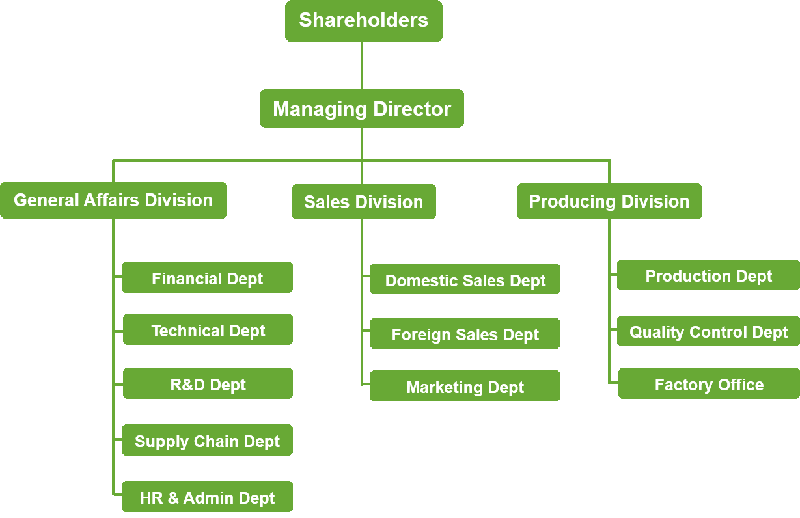 YESHERB have complete, clear and efficient organization structure, currently our company have 3 divisions: general affairs division, sales division and production division, different divisions subordinate different departments.